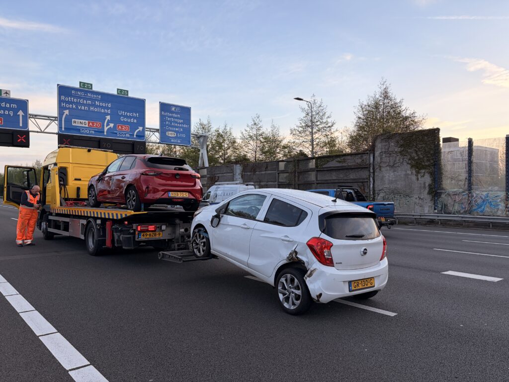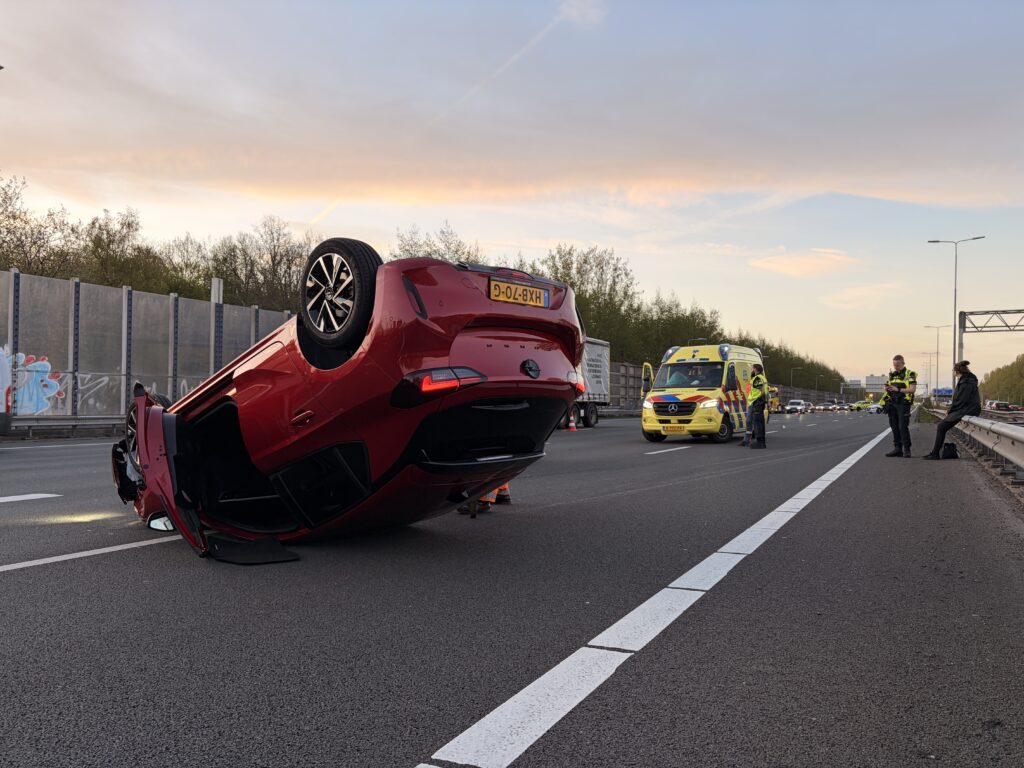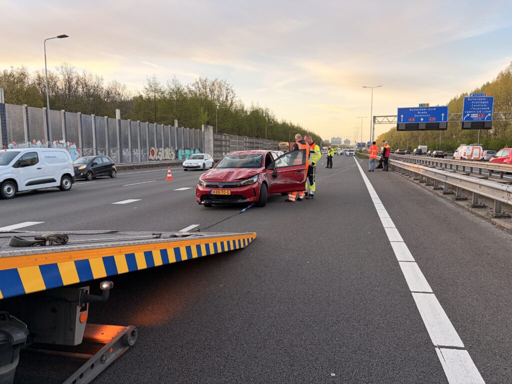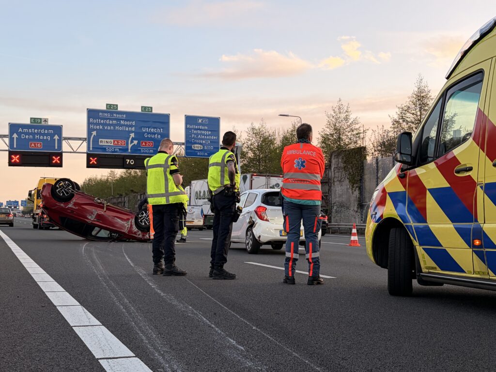 Rotterdam – Donderdagochtend heeft een zwaar ongeval plaatsgevonden tussen twee automobilisten op de A16 richting de A20 bij het Terbregseplein. Eén van de voertuigen kwam daarbij op zijn kop tot stilstand.