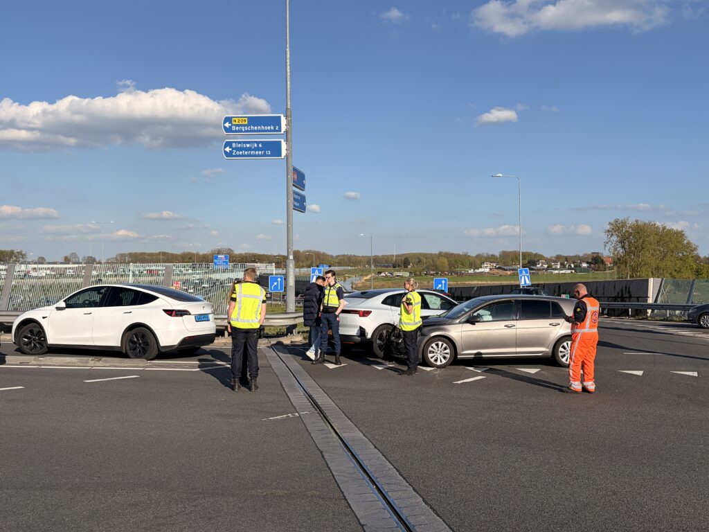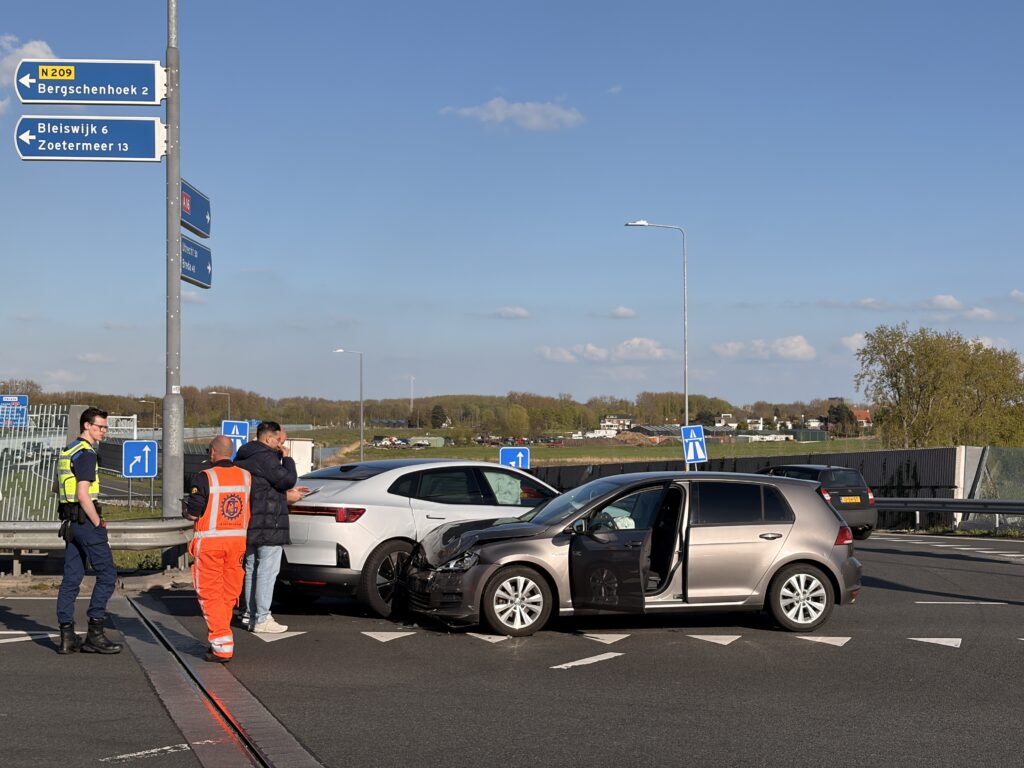 Bergschenhoek – Op de kruising van de N209 met de toerit naar de A16 richting Rotterdam heeft een aanrijding plaatsgevonden tussen twee automobilisten. Er raakte niemand gewond, wel liepen de betrokken voertuigen schade op.